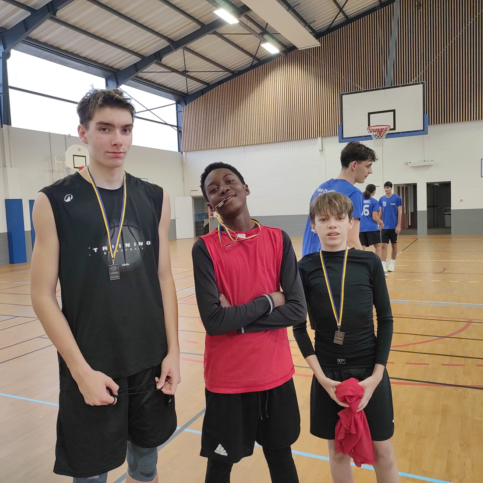 Avant les vacances se tenait le départemental cadets de basket 3x3 à Saint- Brieuc. Les matchs se sont déroulés dans une bonne ambiance, avec beaucoup de fair-play. Les joueurs se sont également investis dans le rôle d'arbitre. De ce fait, Antoine et Larry ont pu mettre en application leur formation d'arbitre. L'équipe de Térel, Jacques, Larry et Titouan ont terminé sur la plus haute marche du podium. Ils sont qualifiés pour le régional à Brest du 21 janvier 26. L'équipe d'Antoine, Enzo et Bradley terminent 3e, médaillés de Bronze. Bravo!