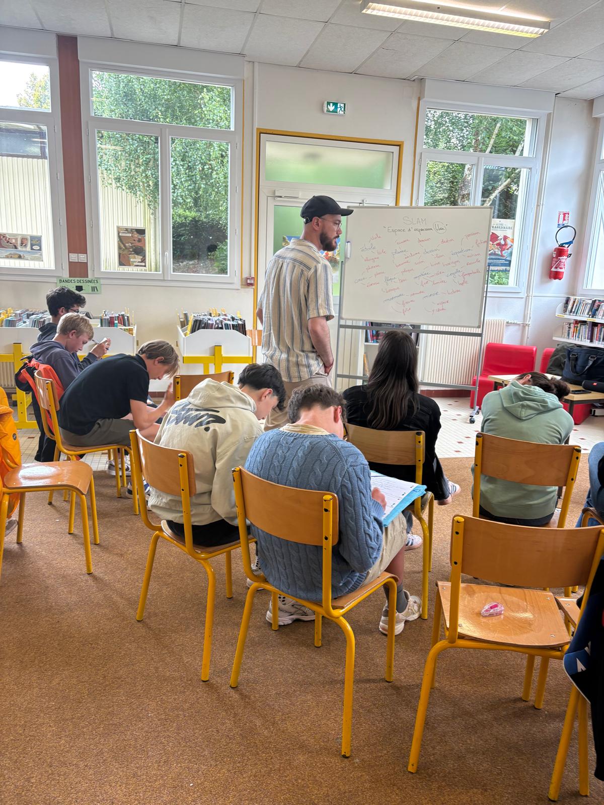 Ce mardi, le CDI s’est transformé en scène poétique vibrante grâce à l’atelier Slam animé par le talentueux poète Neimad.