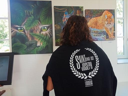 - St Jo à l’exposition d’Hilvern, devant une de ces créations