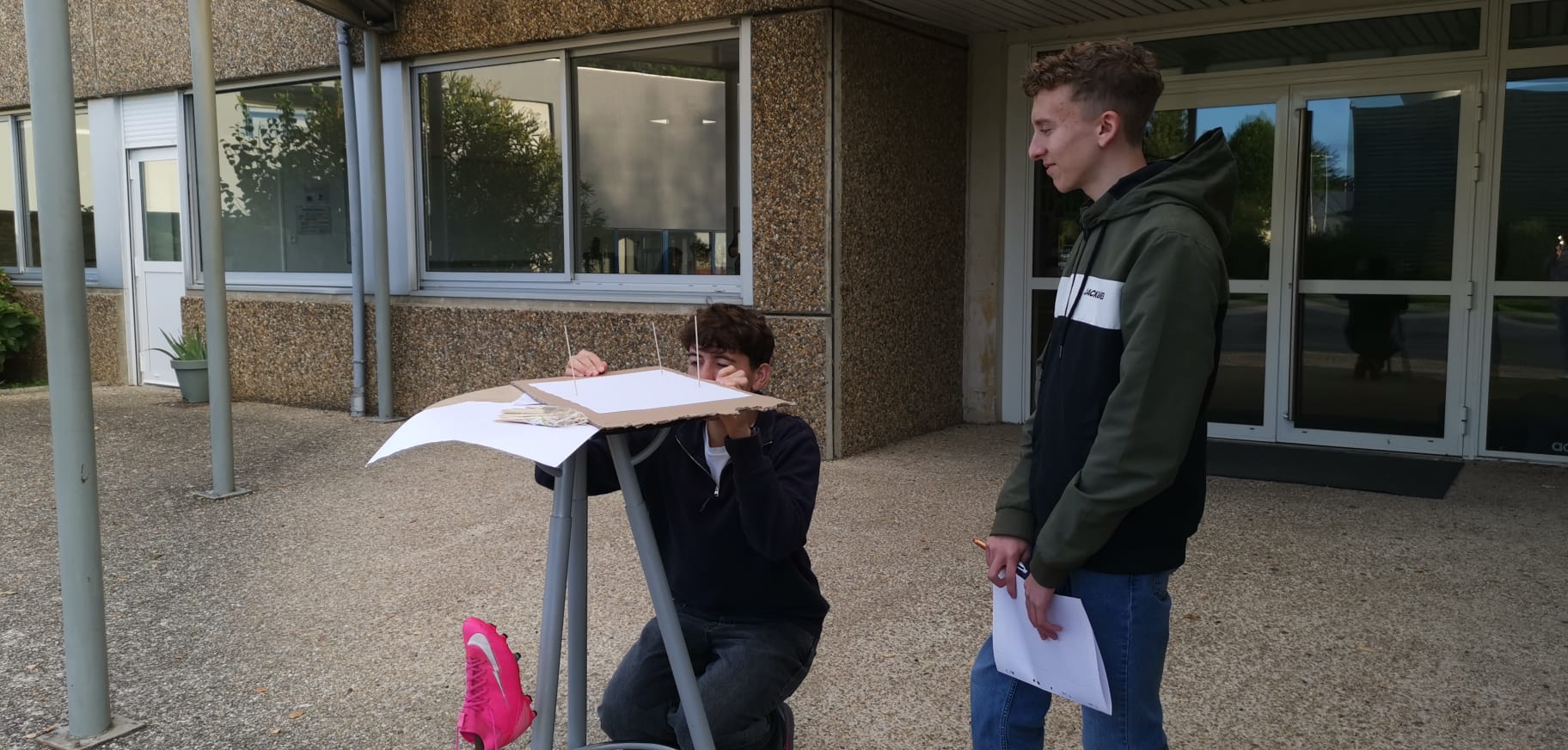 Ce matin, les élèves ont remonté le temps en appliquant la méthode de triangulation plane de Delambre et Méchain pour mesurer une distance dans la cour du lycée.