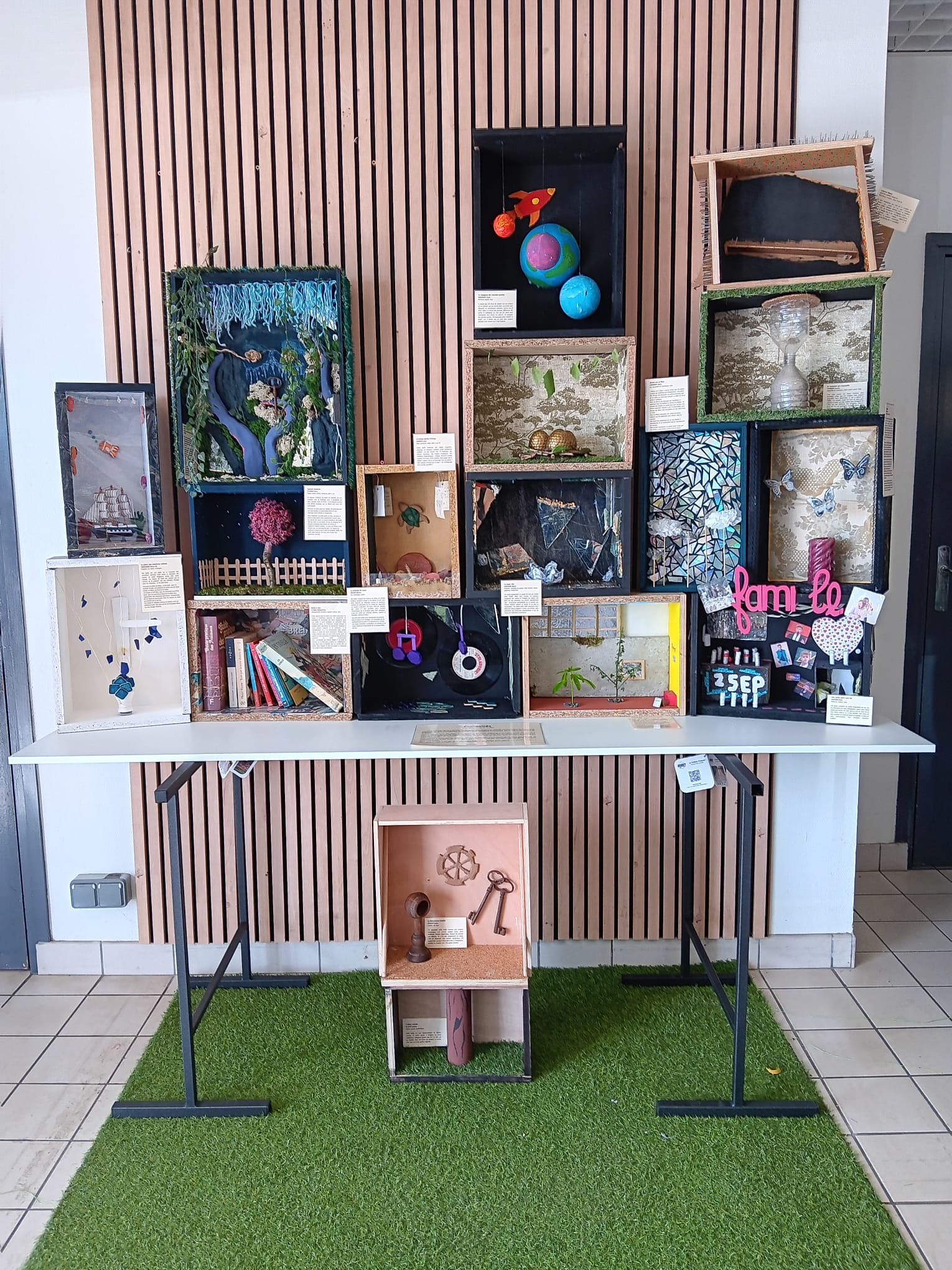 Curiosités est une exposition imaginée par les lycéens de l’option arts plastiques, à découvrir dans le hall d’entrée du magasin Weldom Loudéac jusqu’au 10 juin. En s’inspirant du cabinet de curiosités, ils ont transformé des matériaux récupérés en magasin et dans leur quotidien en œuvres intrigantes et poétiques. Un grand merci à Weldom pour ce beau partenariat, et bravo aux jeunes artistes